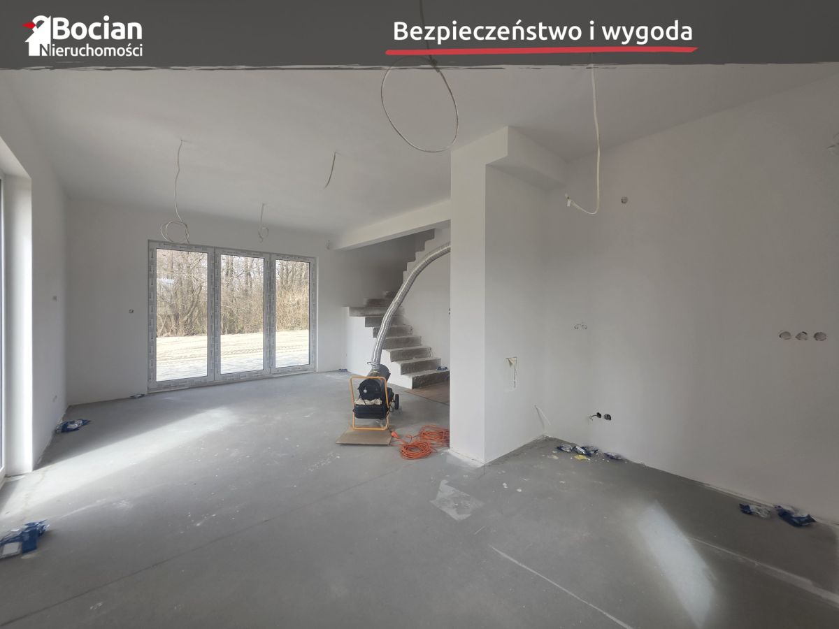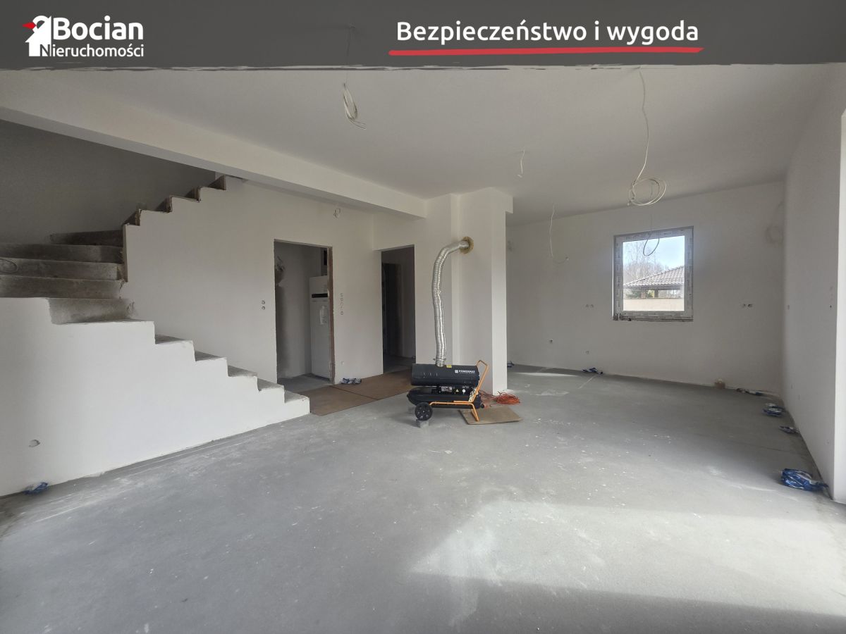 Budynek został oddany do użytkowania. Wybudowany w roku 2025 techniką tradycyjną: porotherm + styropian 20.Ogrzewanie podłogowe w całym budynku za pomocą pompy ciepła. Dach kryty dachówką ceramiczną. Okna trzyszybowe PCV. Budynek został przygotowany pod montaż rekuperacji i ewentualne rozprowadzenie ciepła z kominka.