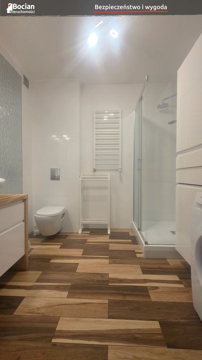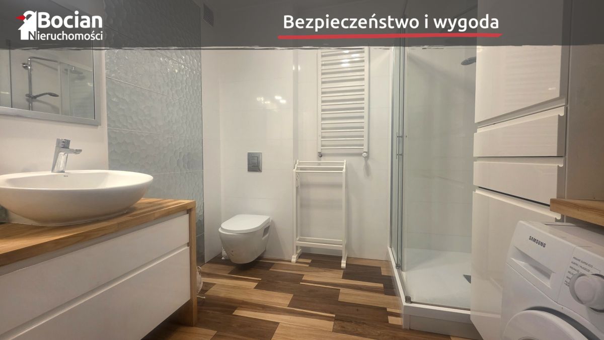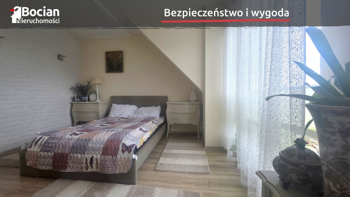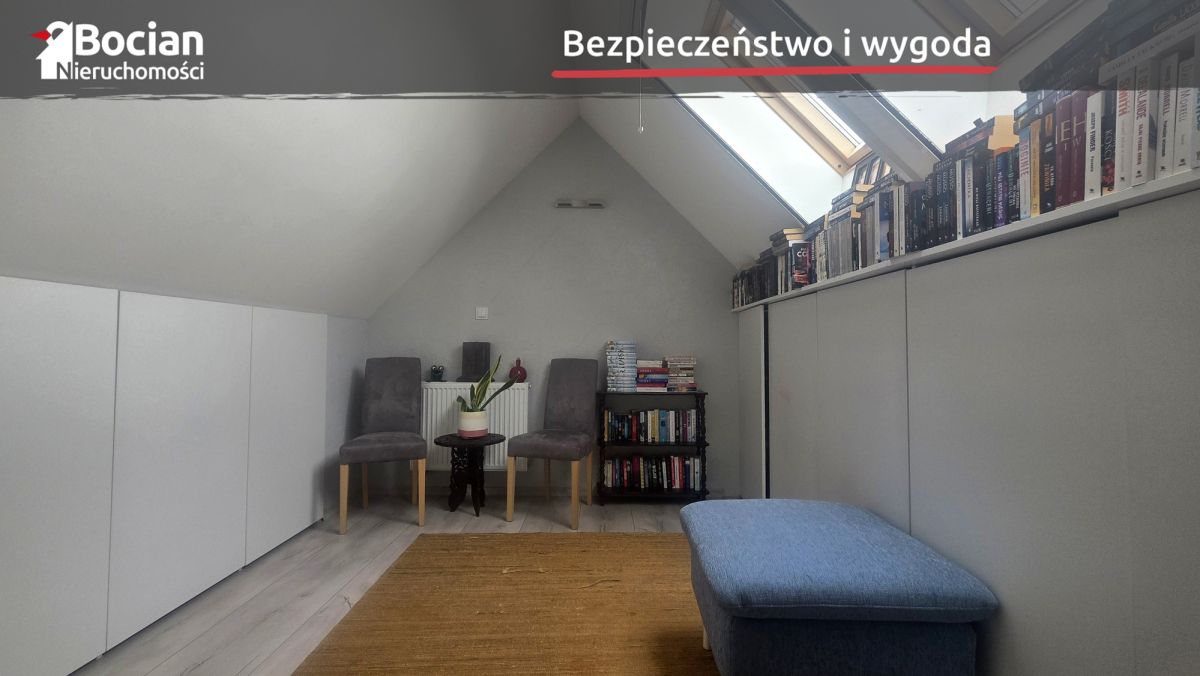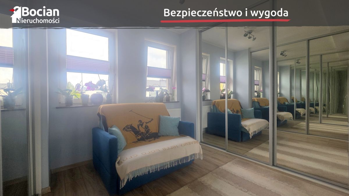 Dom urządzony jest według indywidualnego projektu, który jest niezwykle praktyczny a zarazem stylowy. Wszystkie pomieszczenia zostały wykończone z dbałością o szczegół. Świetnym przykładem są takie rozwiązania jak granitowe blaty i parapety, dębowe schody czy nowoczesne markizy (górna i boczna elektryczna) na tarasie, które idealnie powiększają część dzienną salonu o taras. Ta nieruchomość to nie tylko efekty wizualne i estetyczne, ale także bardzo przemyślana funkcjonalność, o której świadczą chociażby pojemne zabudowy w wielu miejscach. Kuchnia została zrobiona na wymiar według specjalnego projektu oraz wyposażona wysokiej klasy sprzętem AGD.