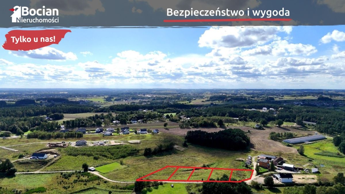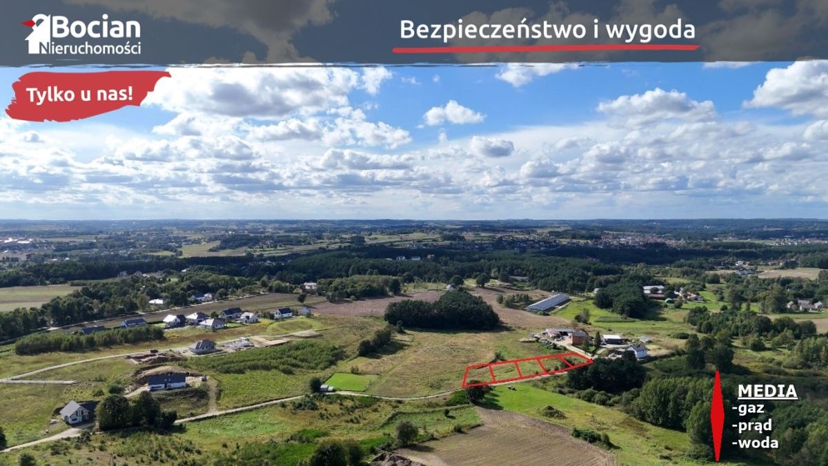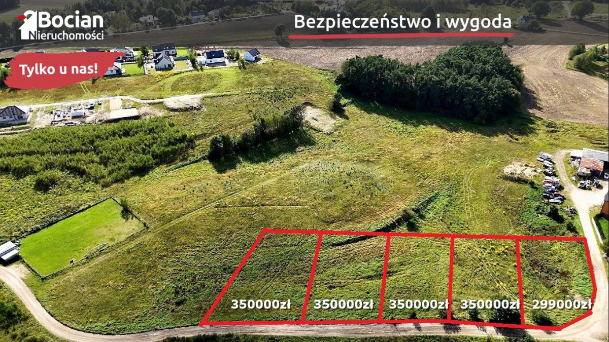 W kompleksie znajdują się działki o powierzchni od 1011m2 do 1094m2. Teren charakteryzuje się płaskim ukształtowaniem. Media: prąd, woda i telekomunikacja w granicy, gaz w odległości ok 150m. Dojazd do kompleksu drogą gminną utwardzoną gruntową.