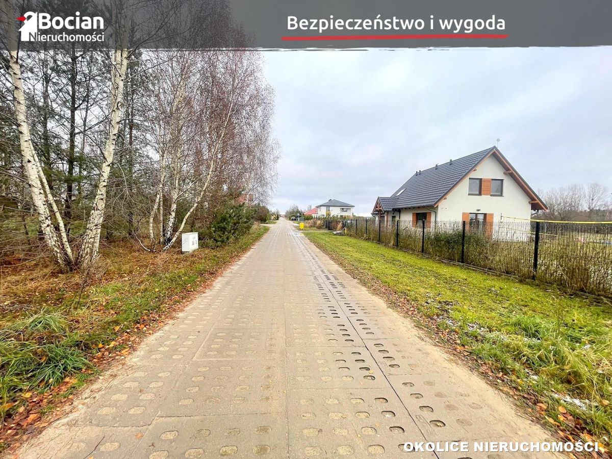 Działka o powierzchni 1062m2 położona jest na nowopowstającym osiedlu jednorodzinnym. Po sąsiedzku jedynie niska zabudowa jednorodzinna. Media: woda, prąd i gaz na granicy działki. Dojazd do nieruchomości drogą gruntową utwardzoną, gminną.