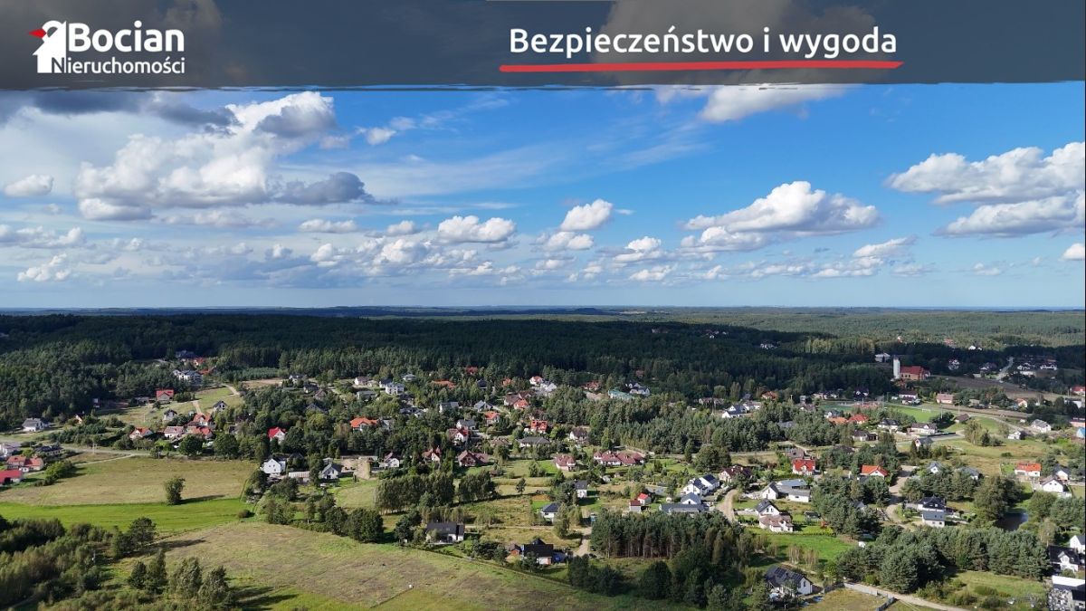 infrastruktura usługowo-handlowa (sklepy, apteka, stacja paliw, fryzjer). Nieruchomości położone są w urokliwym i spokojnym miejscu w otulinie lasu.