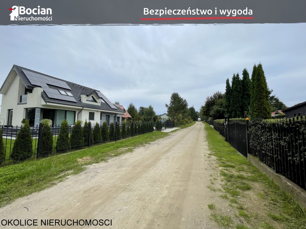 Nieruchomość o powierzchni 1011m2 znajduje się w kompleksie działek budowlanych, na nowo powstającym osiedlu domów jednorodzinnych. Media: woda i prąd znajdują się w odległości 80m od granicy działki. Dojazd do nieruchomości drogą utwardzoną gruntową, w której ustanowiona jest służebność.