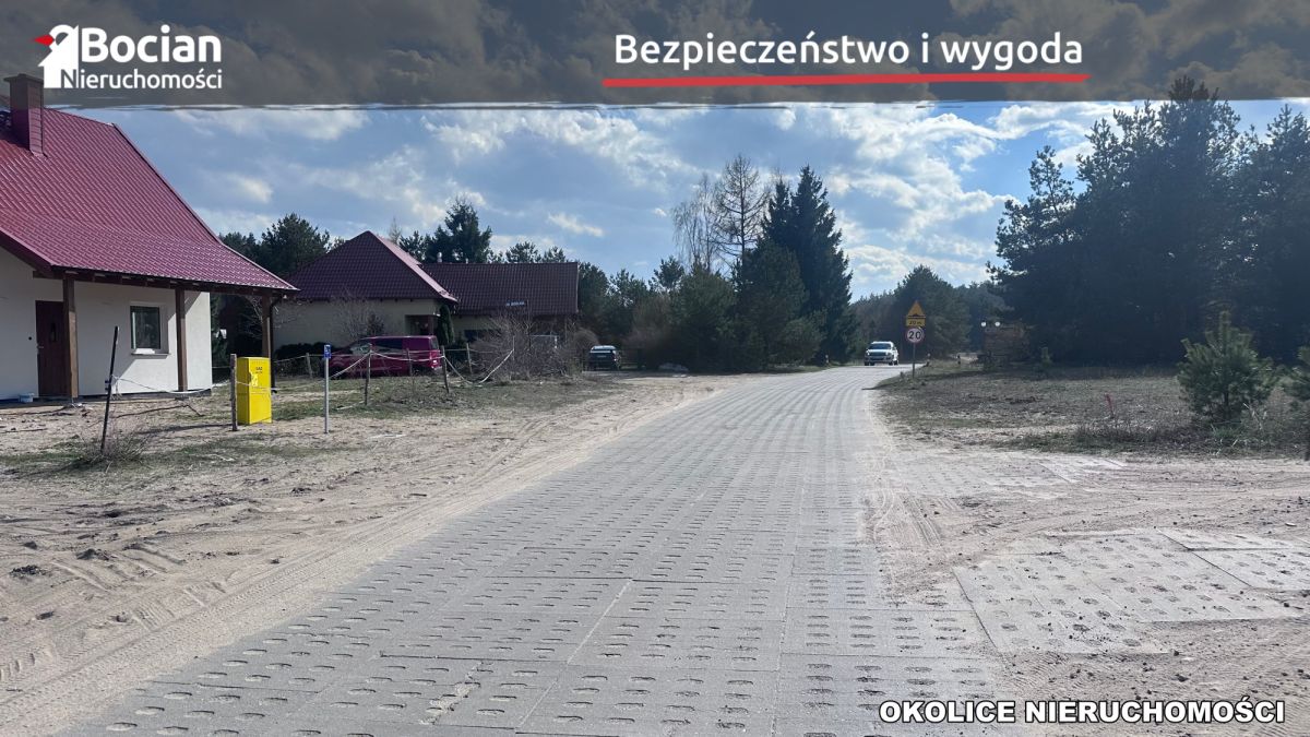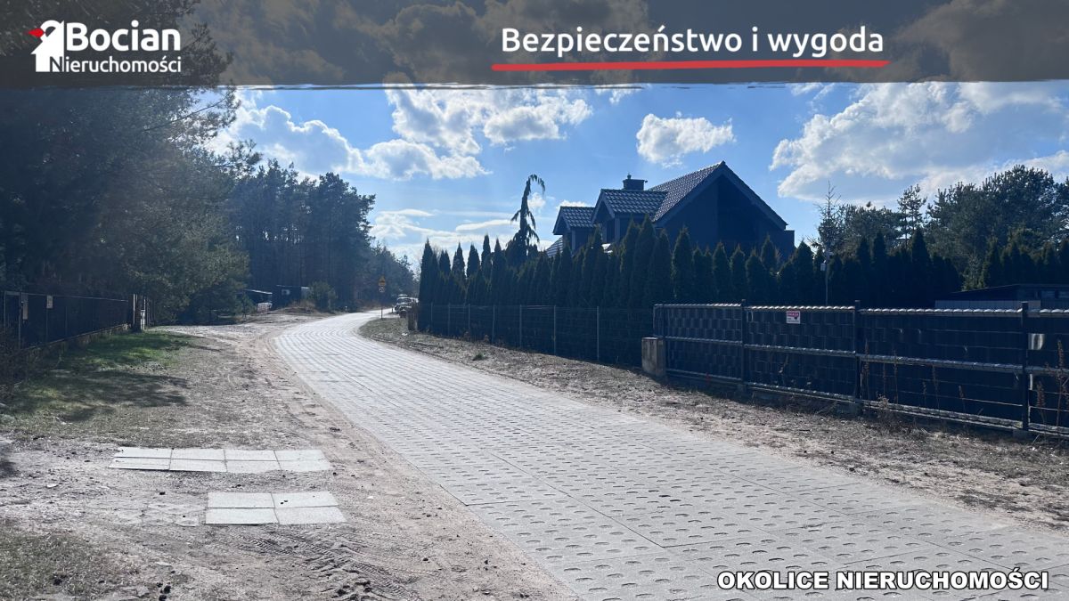 Dwie płaski działki o powierzchni 1003m2 oraz 1313m2 znajdują się na spokojnym osiedlu domów jednorodzinnych. Media: prąd w drodze dojazdowej do kompleksu, wodociąg jest w trakcie realizacji a koszt jego przyłączenia będzie dodatkowo płatny w wysokości 10 tyś złotych. Dojazd do kompleksu gminną drogą utwardzoną płytami jumbo. Następnie do dalszych działek prywatną drogą gruntową, w której nabywane są udziały (koszty wliczone w cenie).