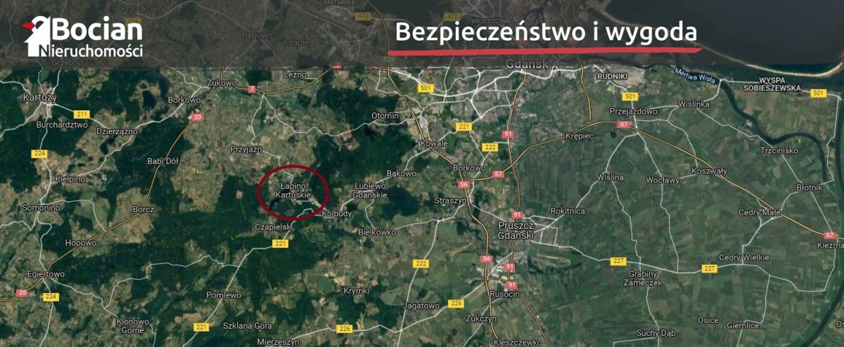 Malownicza działka pod zabudowę - Łapino Kartuskie !LOKALIZACJANieruchomość znajduje się w niedalekiej odległości od