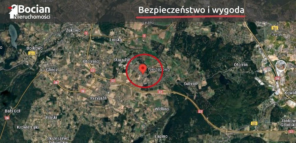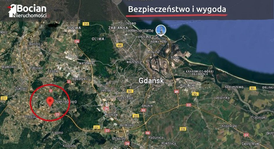 Niestępowo jest prężnie rozwijającą się miejscowością przy Trójmieście. Posiada łatwy dostęp do centrum Gdańska, dzięki bliskości Obwodnicy Trójmiejskiej. Osoby niezmotoryzowane ucieszy fakt, że w miejscowości znajduje się przystanek miejskiego autobusu oraz kolei PKM dzięki niemu z łatwością dostaniemy się do miasta. Nieruchomość znajduje się w okolicy licznych terenów zielonych.
