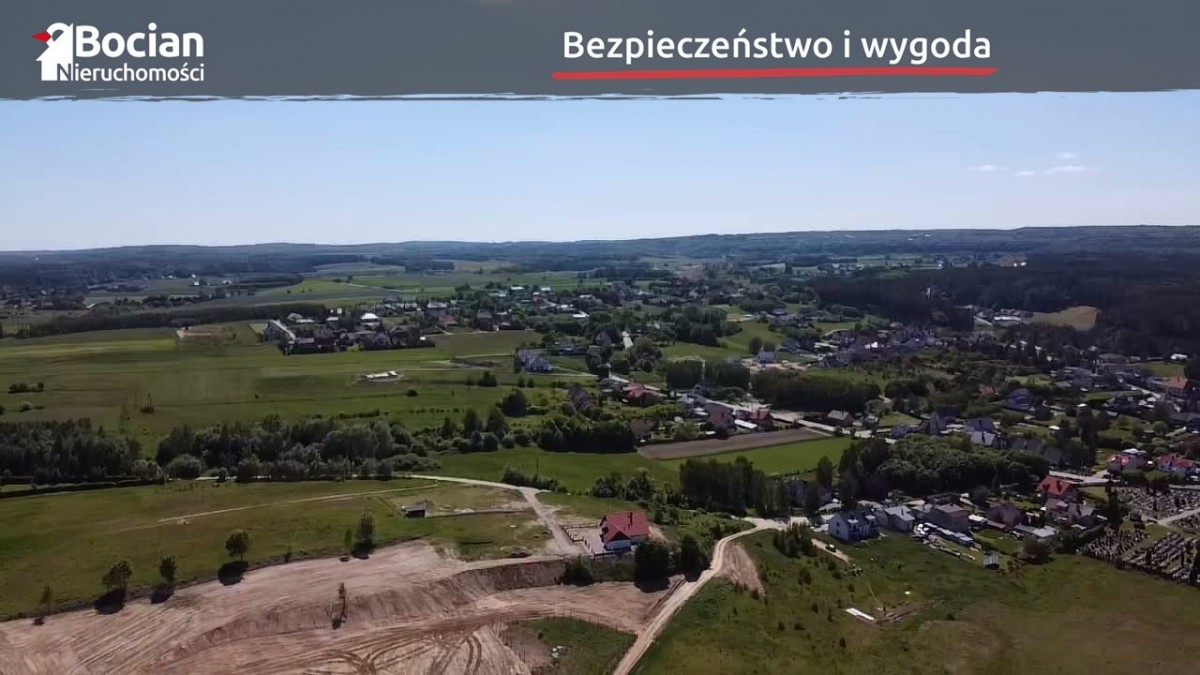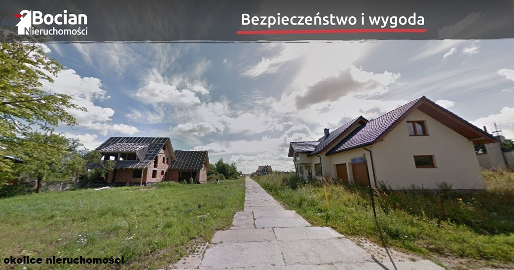 Nieruchomość o powierzchni 1627 m2 położona jest na nowopowstającym, kameralnym osiedlu domów jednorodzinnych. Teren jest wyjątkowo urokliwie położony, pełen zieleni. Media: prąd, woda, kanalizacja i gaz znajdują się na granicy działki. Dojazd do działki drogą gruntową utwardzoną, która jest nabywana w udziałach za dodatkową kwotę w wysokości 20 tyś zł.