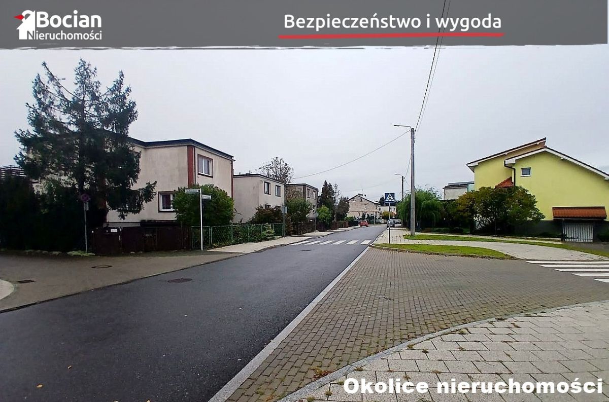 Działka o powierzchni 376m² znajduje się na spokojnym osiedlu domów jednorodzinnych. Media: woda, prąd, gaz oraz kanalizacja znajdują się w granicy działki. Dojazd do nieruchomości drogą gminną utwardzoną. Działka posiada prawomocne pozwolenie na budowę budynku jednorodzinnego w zabudowie bliźniaczej.