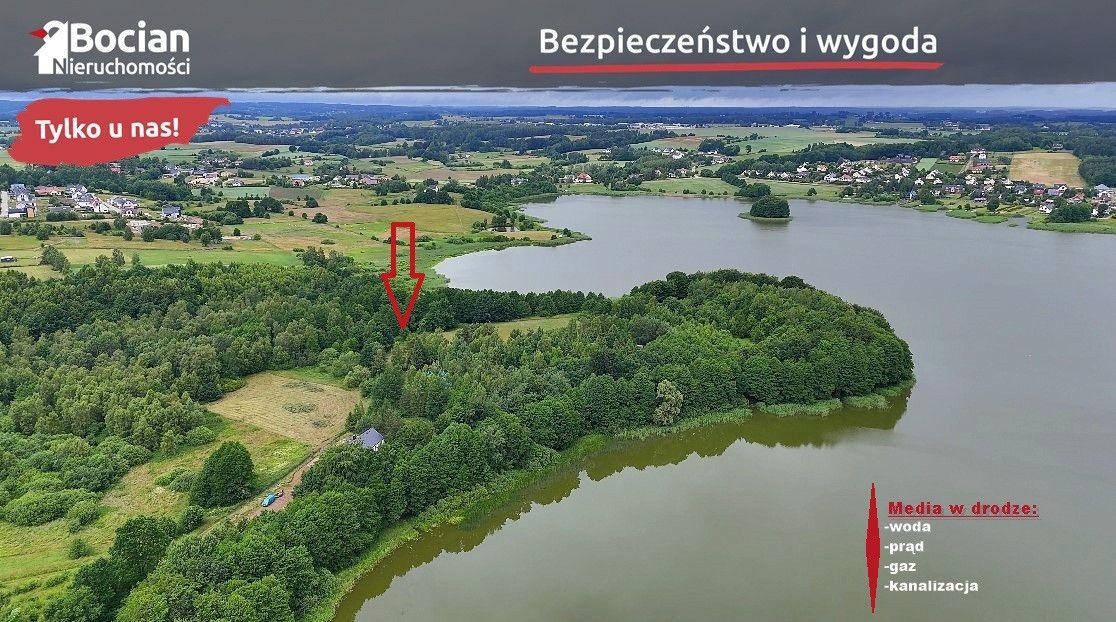 Płaska, słoneczna działka w pierwszej linii od jeziora Tuchomskiego !