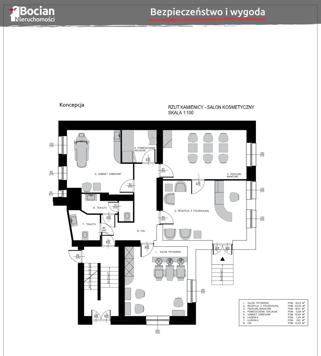 Aktualnie w lokalu znajduje się mieszkanie. Składa się z 4 pokoi, kuchni, łazienki, wc oraz korytarza. Nieruchomość została wyremontowana w 2014 roku. Wymienione zostały instalacje elektryczne, wodno-kanalizacyjne oraz instalacja grzewcza. Istnieje możliwość wykonania oddzielnego wejścia bezpośrednio z ulicy. Lokal ze względu na usytuowanie na parterze idealnie nadaje się na biuro, kancelarię, gabinet lekarski, salon kosmetyczny itp.