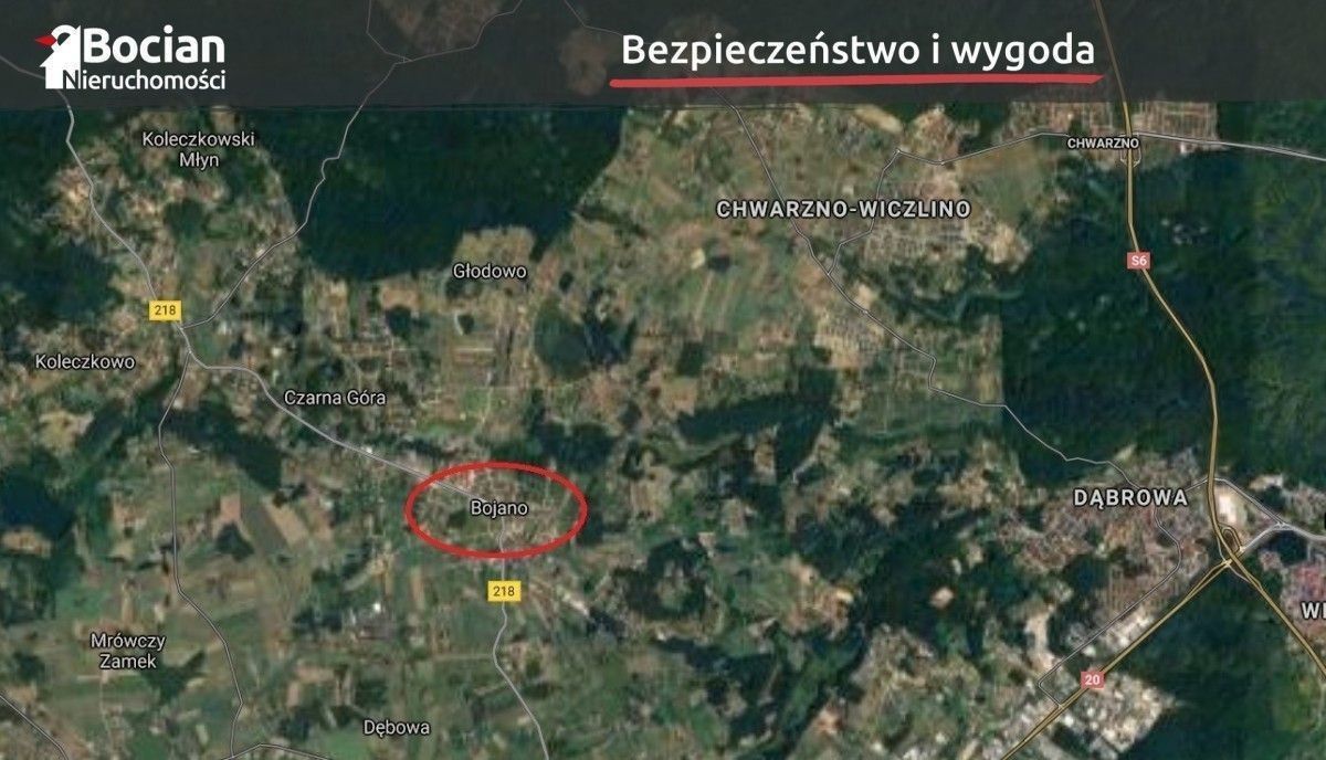 Nieruchomość położona jest w miejscowości Bojano. W pobliżu znajduje dobrze rozwinięta infrastruktura handlowo-usługowa m.in. klinika weterynaryjna, przedszkole, szkoła podstawowa, supermarket. Dodatkowym atutem jest szeroki dostęp do komunikacji publicznej. Miejscowość usytuowana jest zaledwie 20 min od Gdańska i Gdyni, a co za tym idzie również od trójmiejskiej obwodnicy co powinno usatysfakcjonować osoby zmotoryzowane. Okolica nieruchomości to idealnie miejsce dla spacerów oraz szlaków rowerowych - gdzie można się w spokoju wyciszyć.
