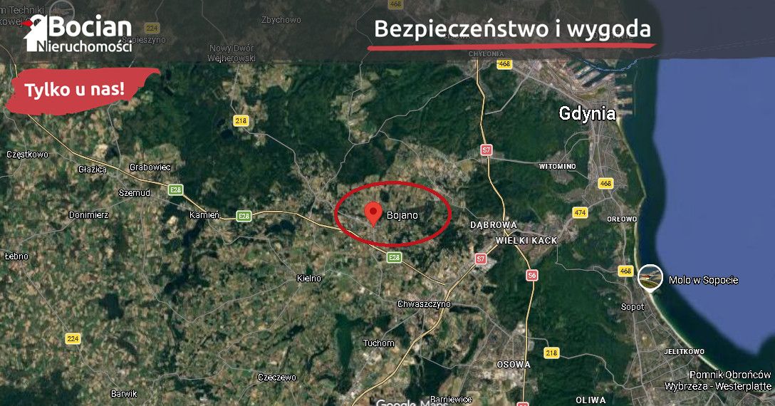 bardzo dobrze skomunikowane z Gdańskiem i Gdynią. W okolicy znajdują się lasy to idealnie miejsce dla spacerów oraz szlaków rowerowych - gdzie można się w wyciszyć.
