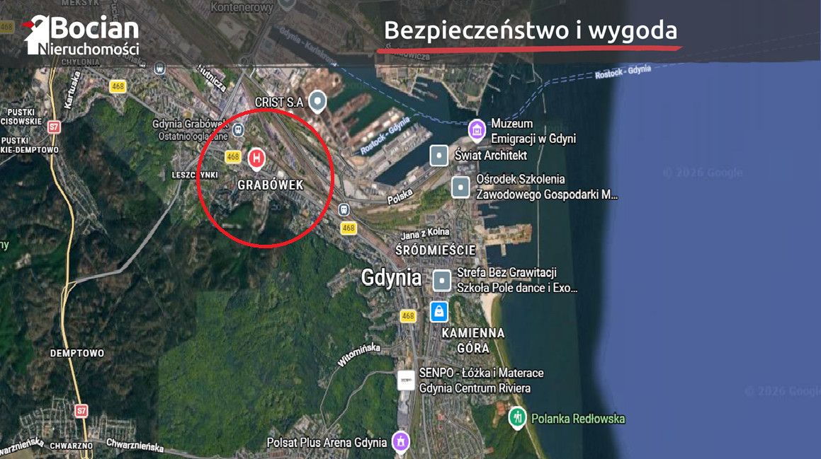 LOKALIZACJA:Nieruchomość położona jest na jednej z prężnie rozwijających się dzielnicy Gdynia Grabówek. Osoby niezmotoryzowane ucieszy