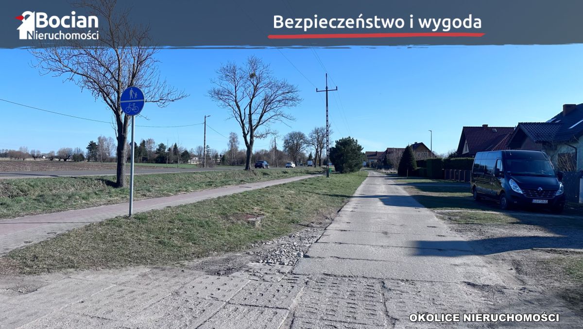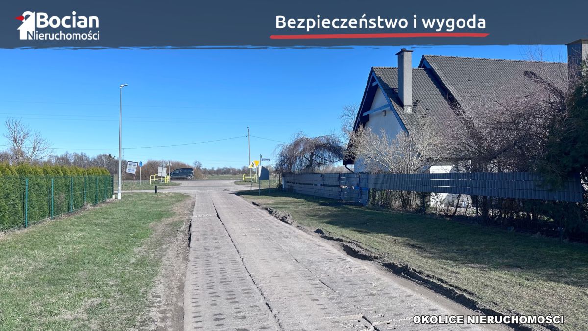 Działka jest w kształcie prostokąta, a jej powierzchnia to 1000m2. Media: woda oraz prąd posiadają gotowe przyłącza. Dojazd drogą gminną utwardzoną gruntową. Na terenie działki znajdziemy drewniany dom o powierzchni 120m2 przeznaczony do remontu bądź rozbiórki.