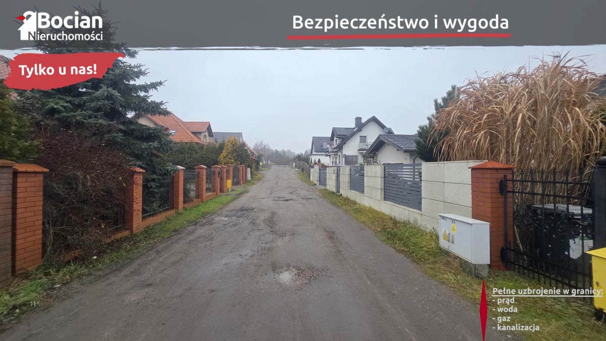 Nieruchomość o powierzchni 813m2 znajduje się na nowym osiedlu domów jednorodzinnych. Media: prąd, woda, gaz i kanalizacja znajdują się na granicy działki. Dojazd do nieruchomości drogą gminną lub z drugiej strony drogą prywatną, w której udział wliczony jest w cenę.