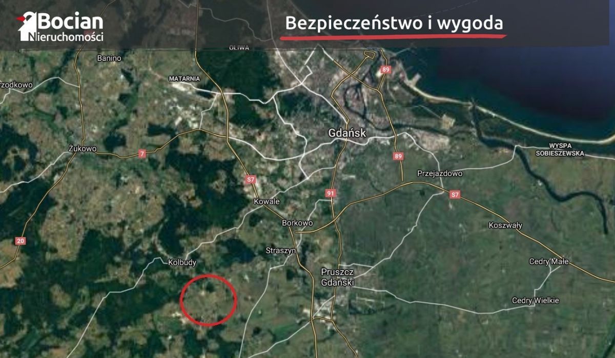 Nieruchomość położona jest w Pręgowie znajdującym się w sąsiedztwie Gdańska. Świetna lokalizacja zapewniająca szybki i wygodny dojazd do Trójmiasta zarówno samochodem jak i autobusem. W Pręgowie znajdziemy punkty użyteczności publicznej tj. szkoła podstawowa, kościoły oraz sklepy. W ościennej - gminnej miejscowości Kolbudy znajduję się pełna infrastruktura łącznie z centrum handlowym i basem. Miejscowość jest bardzo dobrze skomunikowana z Gdańskiem dzięki bliskości obwodnicy trójmiejskiej oraz sieci autobusów komunikacji publicznej.
