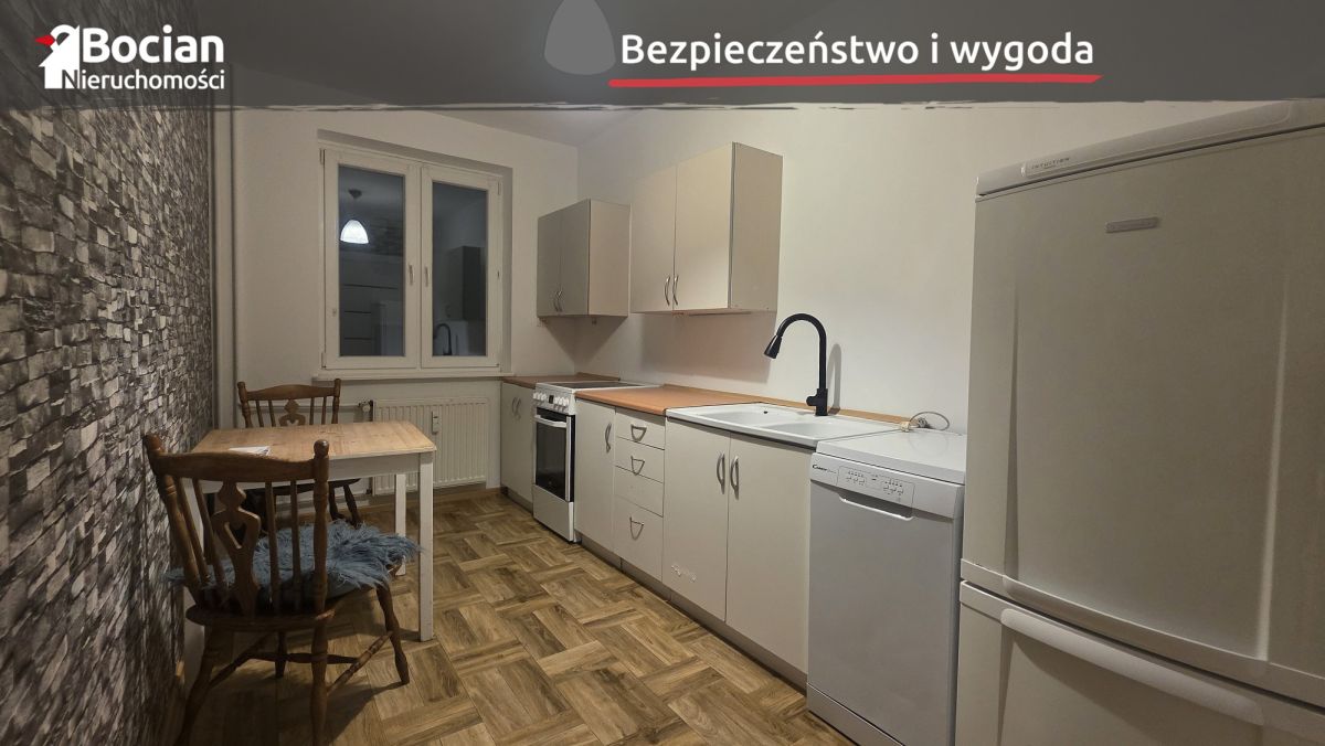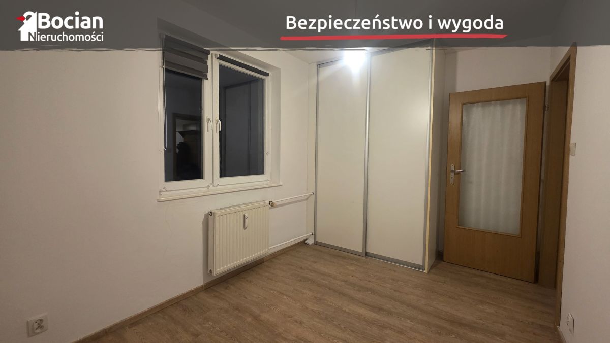Nieruchomość o powierzchni 48.5m2 składa się z salonu, osobnej kuchni, sypialni, łazienki oraz przedpokoju. Ustawny salon położony jest od strony południowej, co zapewnia naturalne światło przez większość dnia. Mieszkanie ma funkcjonalny układ, który pozwala na wiele rozwiązań aranżacyjnych. Istnieje możliwość otworzenia salonu na kuchnię lub utworzenia aneksu kuchennego zyskując trzeci pokój. Łazienka ma dużą powierzchnię oraz okno.